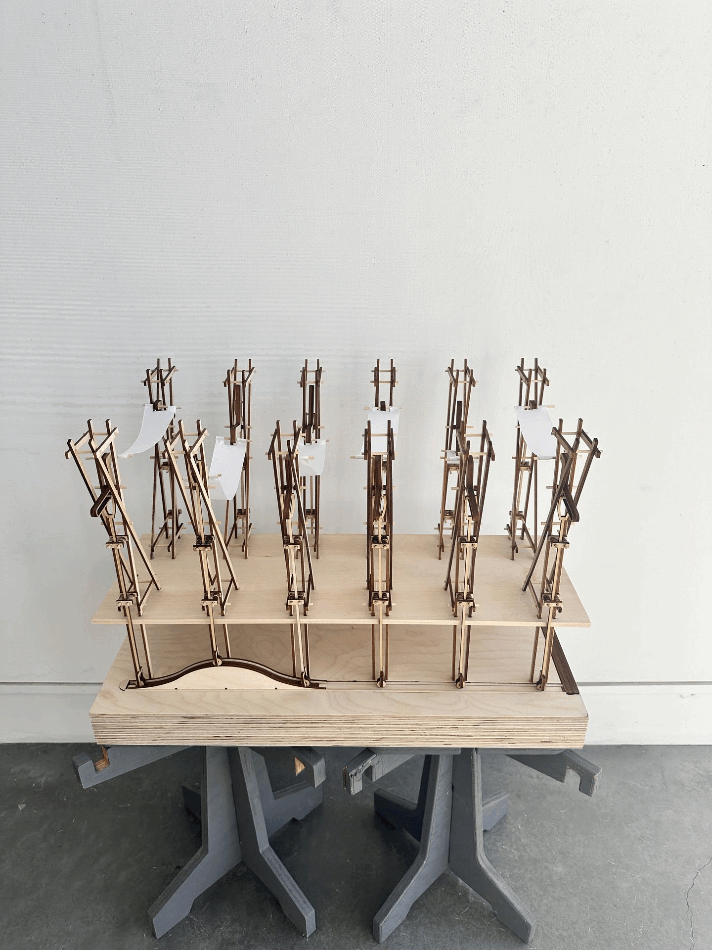 Challenge: Create a kinetic structure with a smart system implemented as well. Our project uses the movement of the ocean to lift canopies on top of the pier. Our smart system also depends on the movement of the ocean by piezoelectric stripes working in tension as the structure pushes and pulls the canopies.
